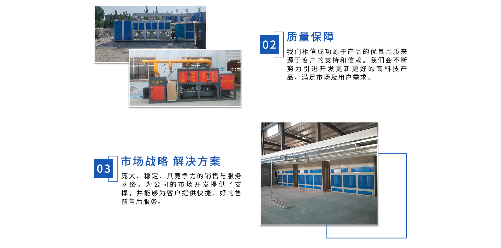 公司自成立以來,始終專注于工業(yè)廢氣、污水、粉塵等環(huán)境污染的治理,先后研發(fā)出催化燃燒設(shè)備、光氧催化廢氣處理設(shè)備、低溫等離子廢氣處理設(shè)備、粉塵處理-體化設(shè)備等一系列環(huán)保設(shè)備,產(chǎn)品先后通過ISO901質(zhì)量管理體系認(rèn)證、中國環(huán)境保護(hù)產(chǎn)品認(rèn)證。